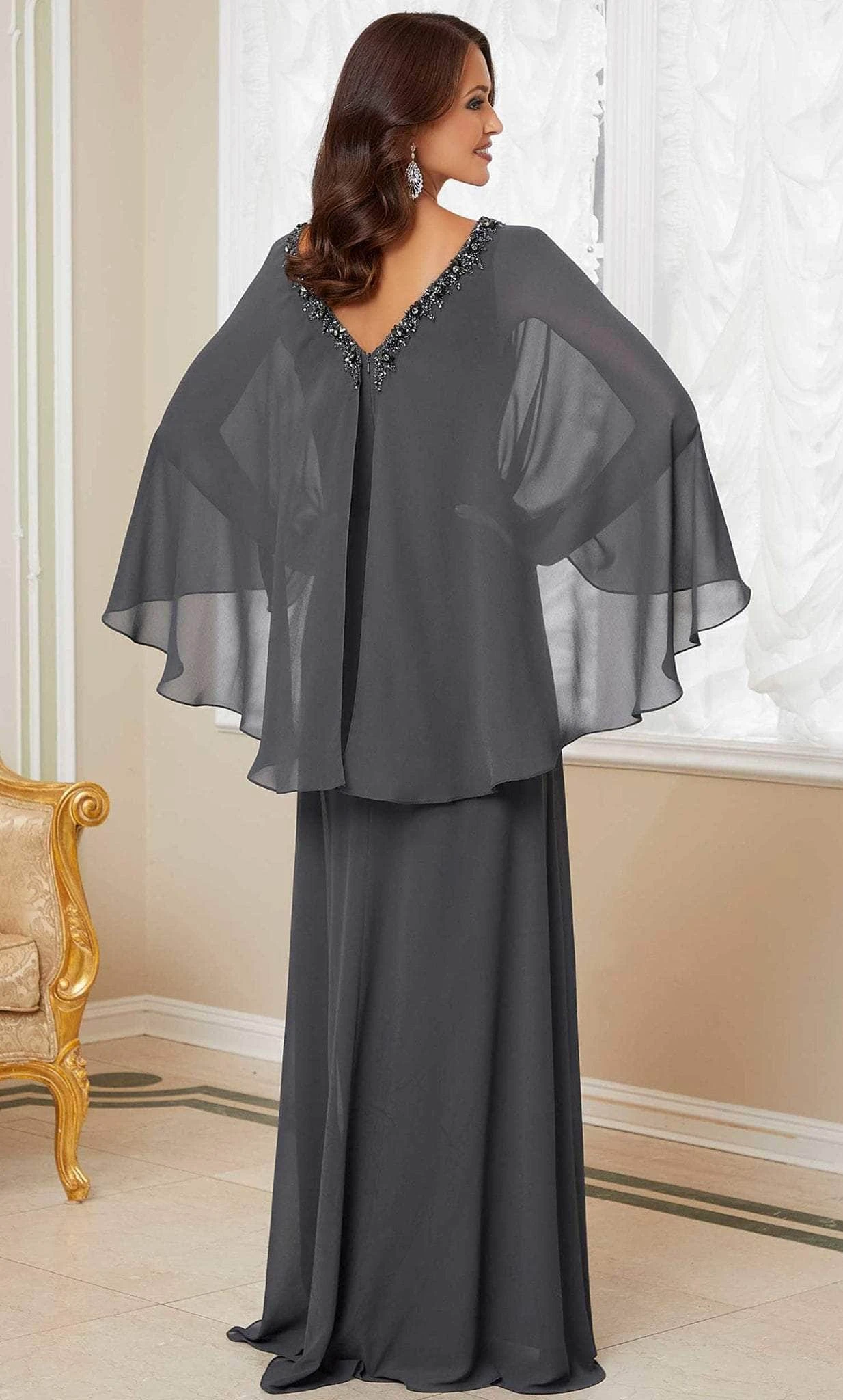 Be a woman of style and beauty in this classy MGNY By Mori Lee 72731 creation. Fashioned in luxe chiffon fabric, this elegant yet striking gown is adorned with crystal beadworks on the v-neckline and v-open back. It has high-low cape sleeves for a touch of glamor. The skirt is tailored in a full length A-line silhouette and exits in a slight sweep train. You are sure to turn heads in this MGNY By Mori Lee 72731 evening gown. Models are wearing the Charcoal and Royal colors.