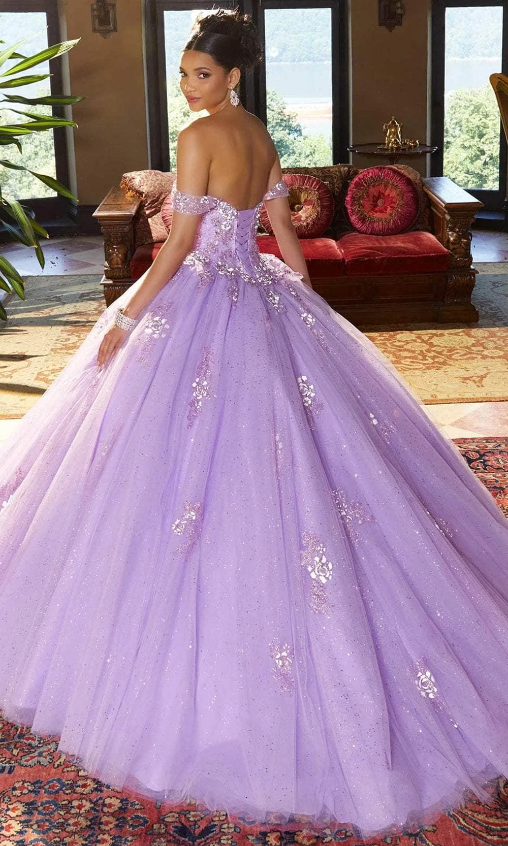 Parade a sophistication that charms everyone in this stunning Mori Lee 60152 masterpiece. This opulent ensemble features a fitted bodice decorated with sparkling appliques making it dazzle. Featuring a sweetheart neckline over a strapless fitted bodice. The back allures in an open style, exposing your sexy back with a lace-up closure for a secure fit. A voluminous ballgown metallic net skirt with layers of frilled tulle cascades to the floor. The look is completed with a sweeping train finish. Get ready for heads turning as you wear this Mori Lee 60152 prom dress. Models are wearing Orchid color.