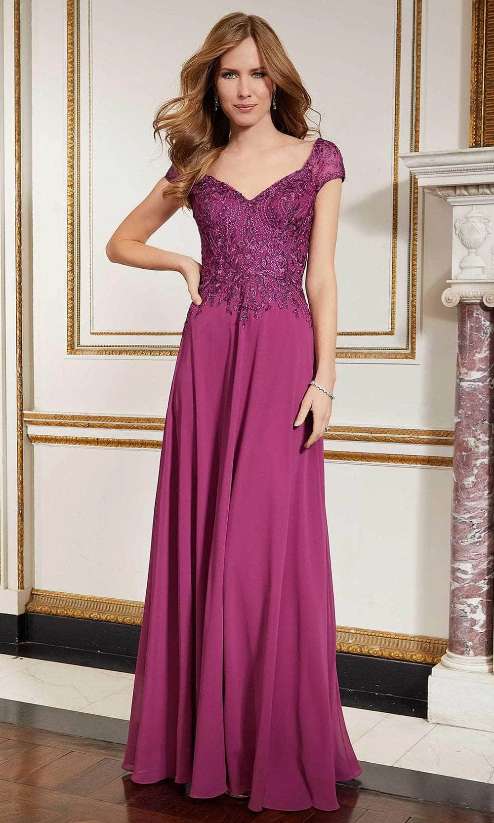 Look your absolute best and create a night that you will never forget as you wear this Mori Lee 72626 evening dress. This stunning gown made with chiffon fabric displays a beaded and embroidered bodice supported by a delicate cap sleeves and sweetheart neckline. It also highlights a mid-open styled back that closes with a central zipper. An A-line silhouette finishing down to its full length is fully lined and flowy. Charm everyone with the gorgeous style of this Mori Lee 72626 masterpiece. Models are wearing Navy and Raspberry colors