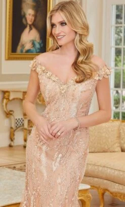 MGNY By Mori Lee – Short Sleeve Embroidered Prom Gown 72622SC – 1 Pc Champagne In Size 6 Available